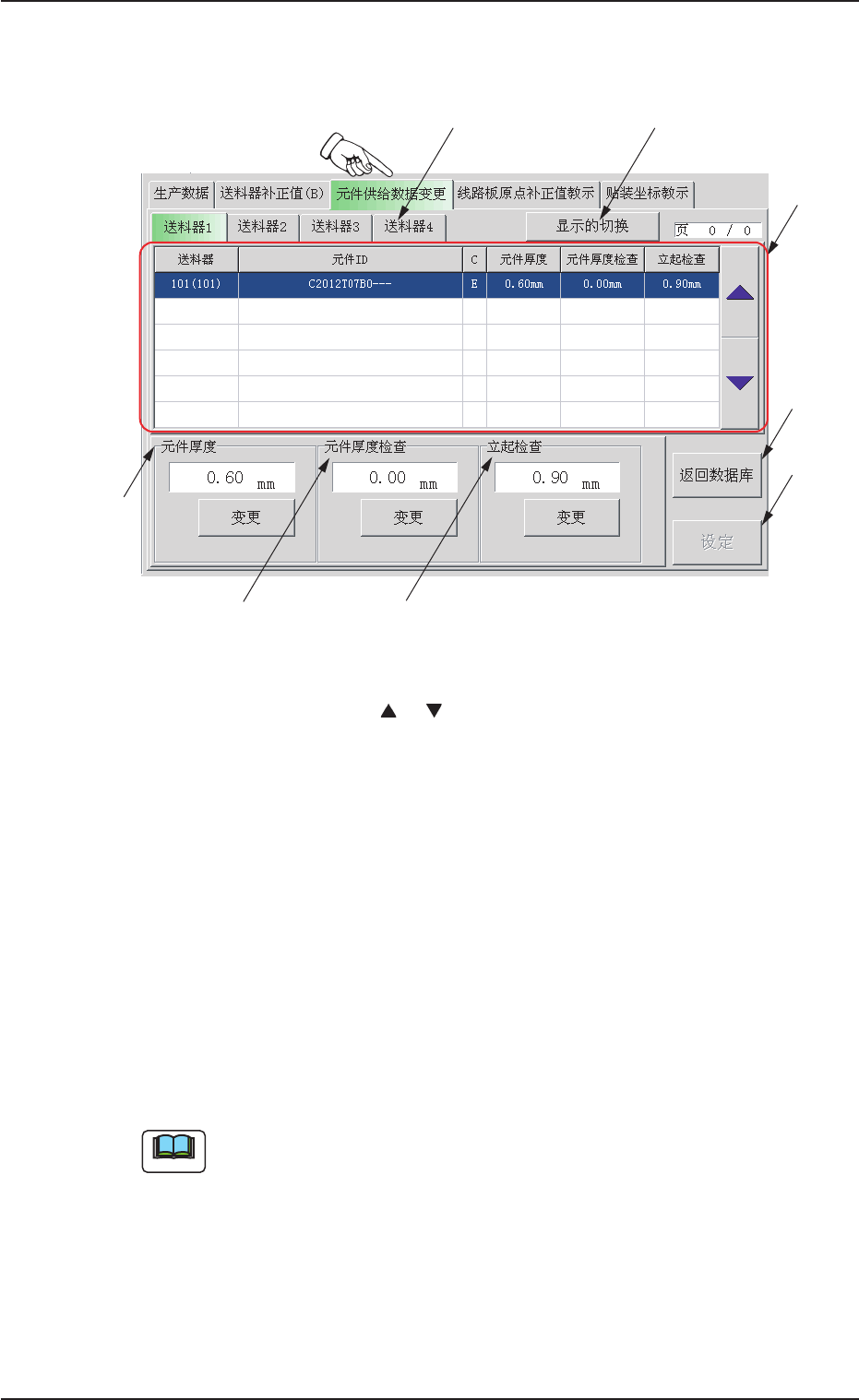 *2 *2 *2 *2 *2 [ [ [ [ [ 表示的切换 表示的切换 表示的切换 表示的切换 表示的切换 ] ] ] ] ] 按钮 按钮 按钮 按钮 按钮 互相切换元件供给数据的表示。 Fig.2E36 Fig.2E36 Fig.2E36 Fig.2E36 Fig.2E36 “ 元件供给数据变更 元件供给数据变更 元件供给数据变更 元件供给数据变更 元件供给数据变更 ” 选项卡 选项卡 选项卡 选项卡 选项卡 ( ( ( ( ( 显…