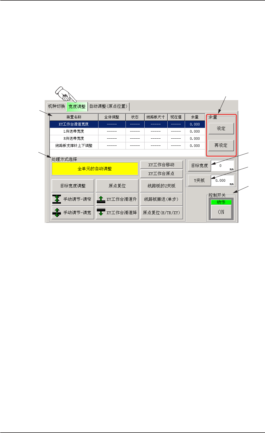进行全单元(XY 工作台滑道、L 传送带及 R 传送带) 的宽度调整。