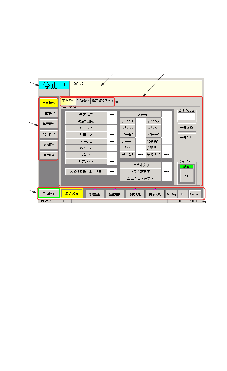 1. 1. 1. 1. 1. 维护保养菜单的概要 维护保养菜单的概要 维护保养菜单的概要 维护保养菜单的概要 维护保养菜单的概要 1.1 1.1 1.1 1.1 1.1 维护保养菜单界面的构成 维护保养菜单界面的构成 维护保养菜单界面的构成 维护保养菜单界面的构成 维护保养菜单界面的构成 按主菜单栏中的 [ 维护保养 ] 按钮,触摸屏上便显示维护保养菜单界 面。 Fig.2F1 Fig.2F1 Fig.2F1 Fig.2F1 Fig.2…