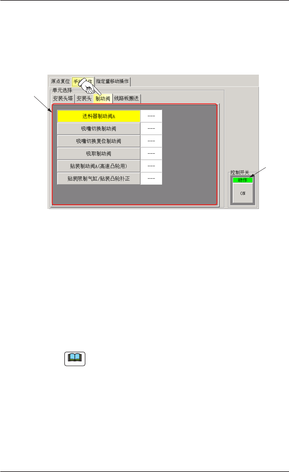 在 “ 手动操作 ” 选项卡中,按[ 制动阀]Tab,便显示以下选项卡。