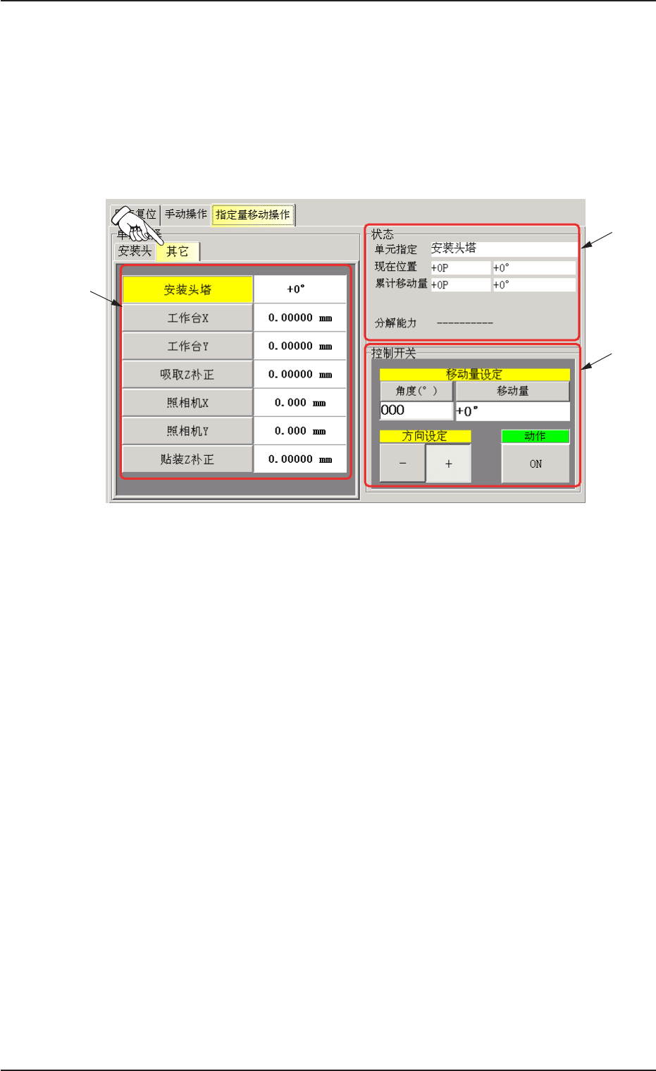 进行安装头以外单元的指定量移动操作。