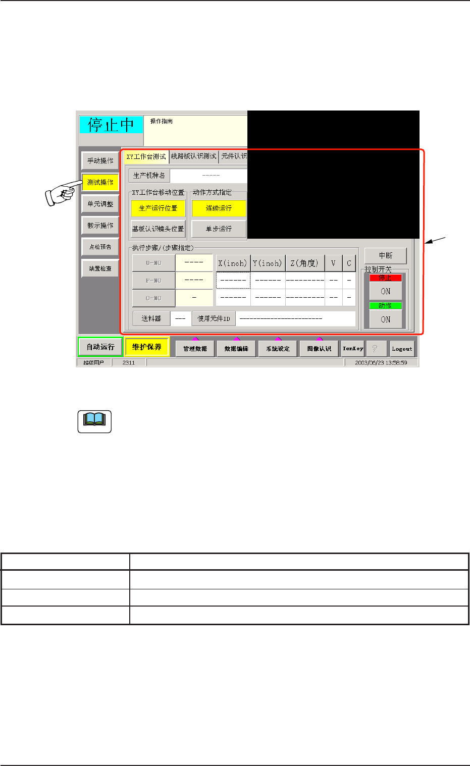 工作台测试 确认不同生产机种线路板程序下的 XY 工作台动作。