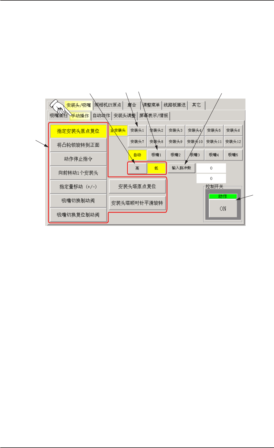 进行吸嘴切换复位制动阀的 ON/OFF。