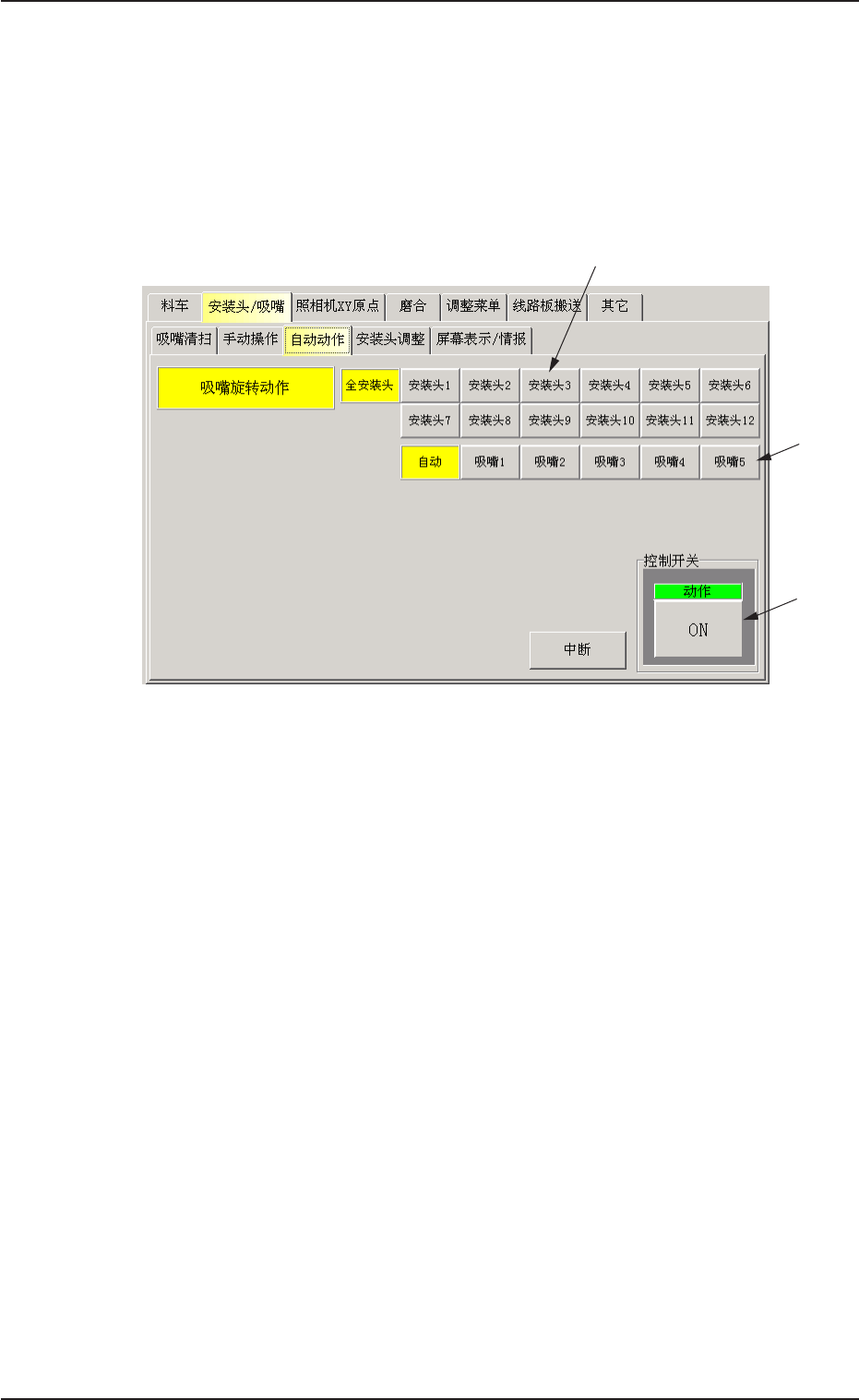进行吸嘴切换复位制动阀的 ON/OFF。