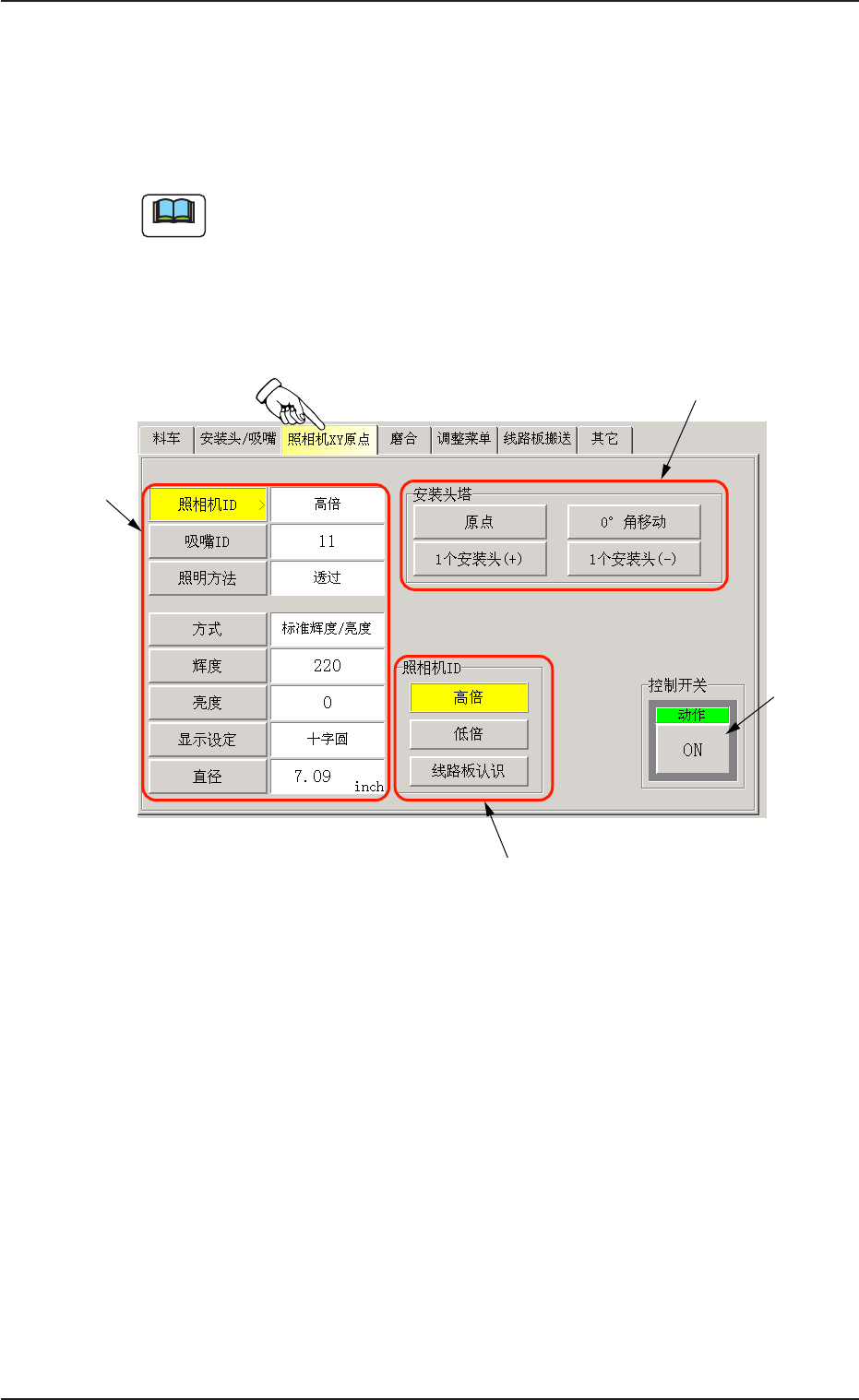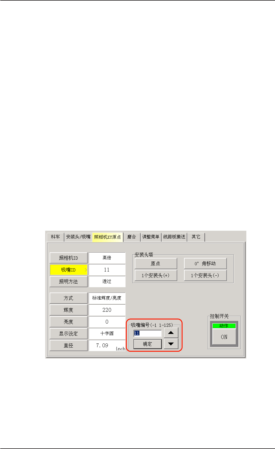 每按一次向上 / 向下箭头,文本框中的 “ 吸嘴 ID” 数值就会增