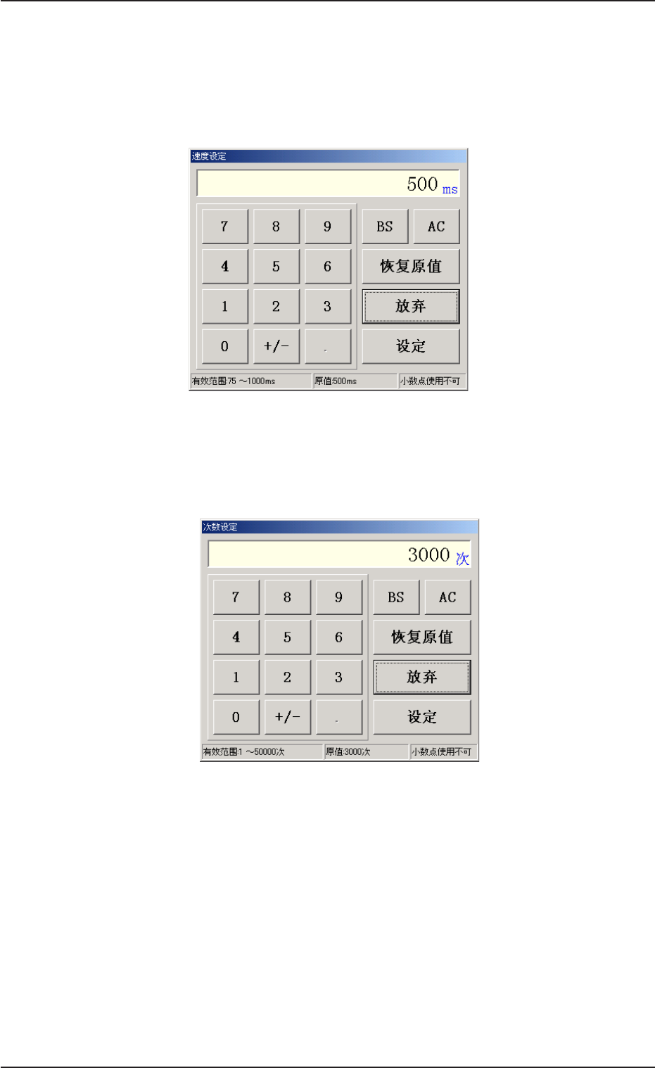 显示 “ 速度设定 ” 编辑界面。编辑界面中显示的速度(ms)为当