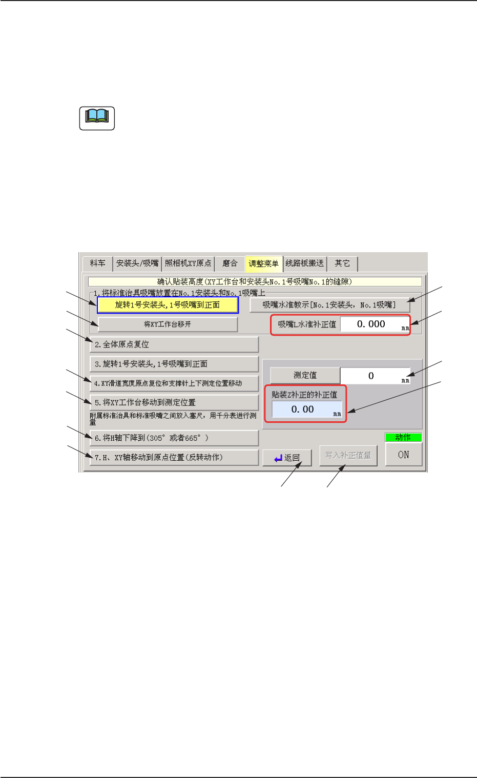 使用贴装高度调整标准治具和标准吸嘴治具,确认和设定 MZ 轴补