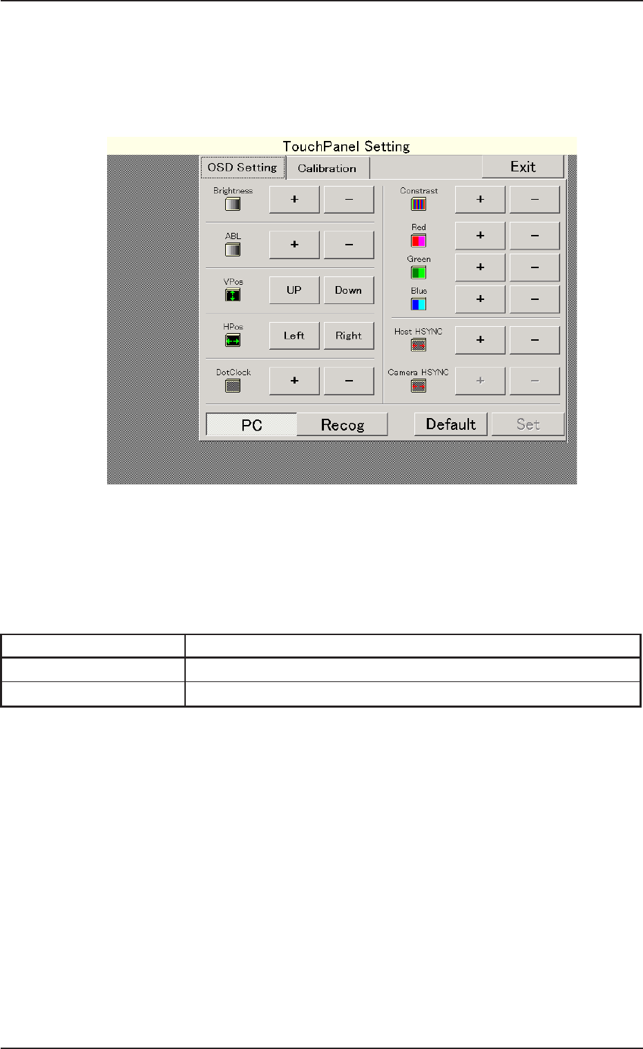 Setting 可调整触摸屏的灰度、对比度、色调、弯曲度等。