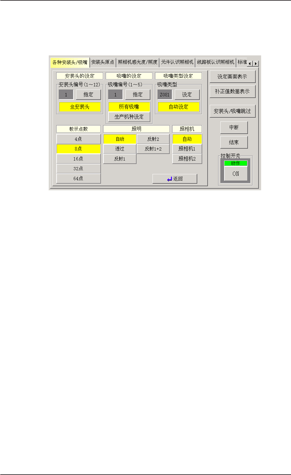 辑界面,用数字键输入指定吸嘴编号( 1~5),按[ 设定] 按钮,