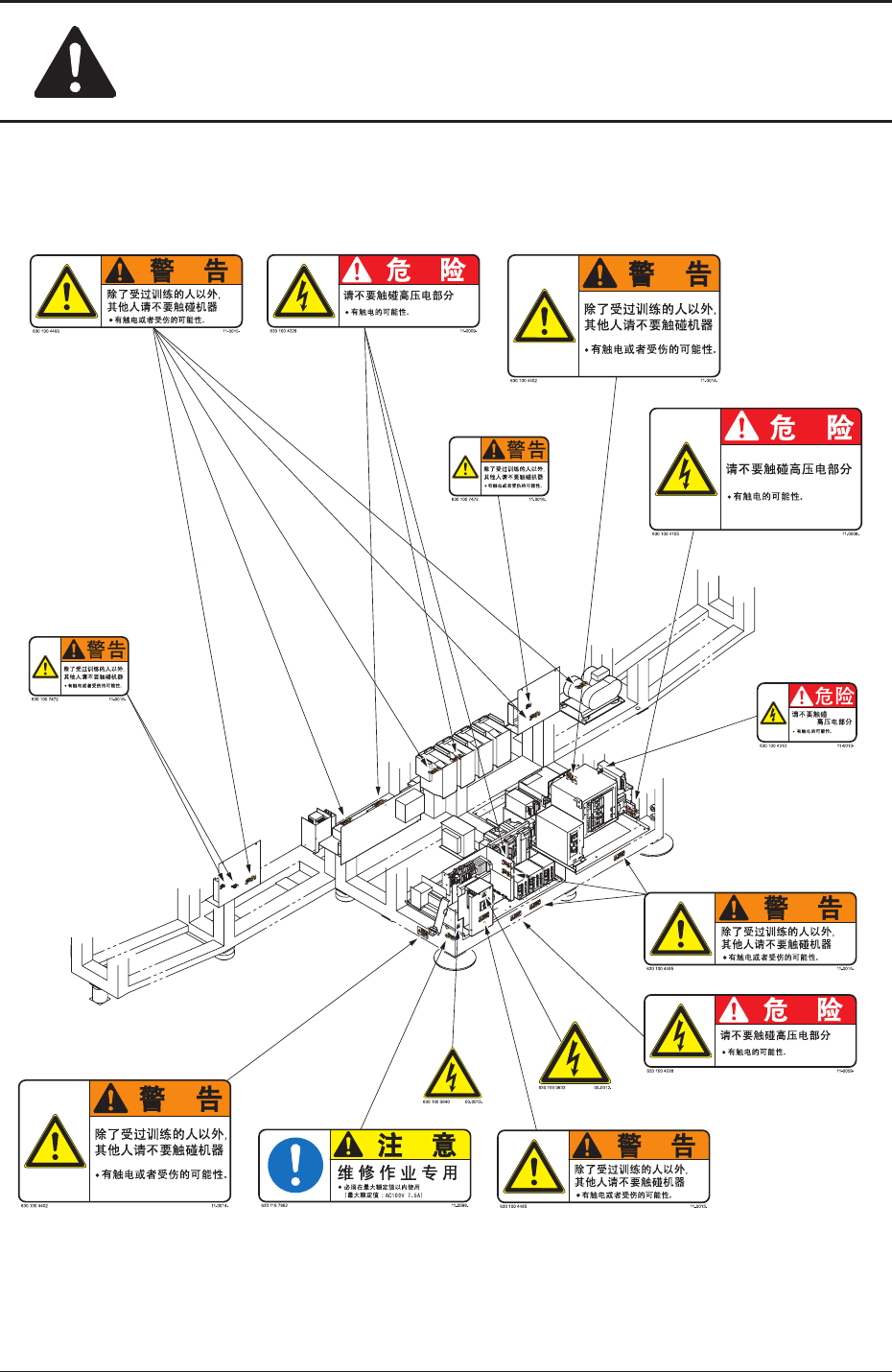 • 粘贴此标签的位置使用高电压,请勿触碰,以免触电。