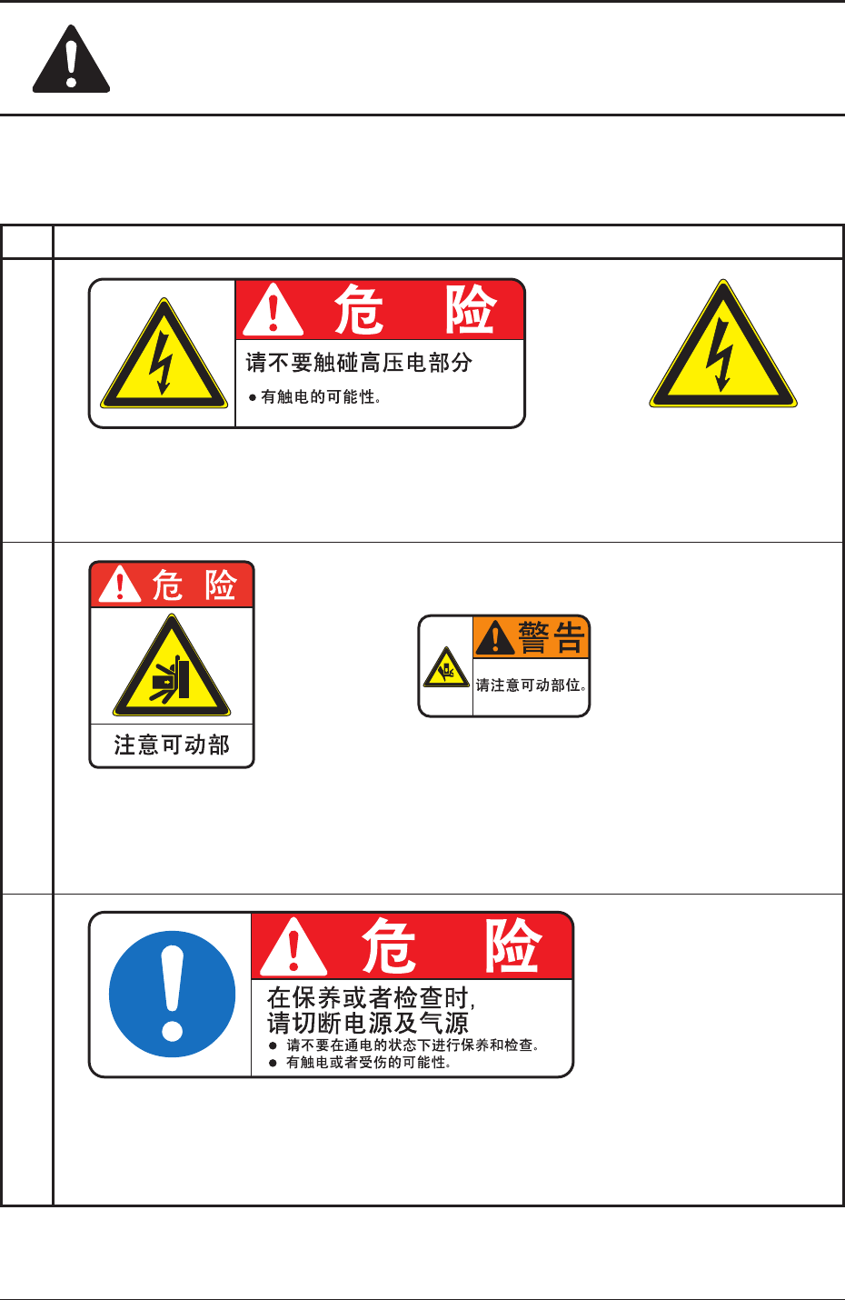 • 进行装置的保养( 点检、清扫、注油或调整等) 时,请由专业维修人员按规定步