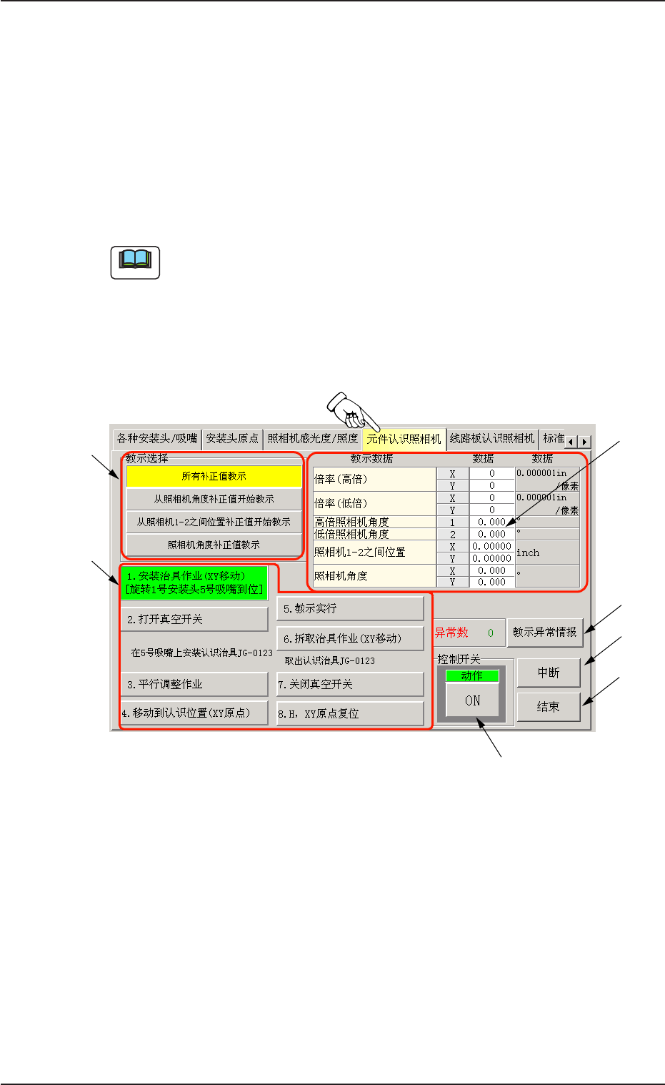 在 “ 教示操作 ” 子菜单界面中,按[ 元件认识照相机]Tab,便显示