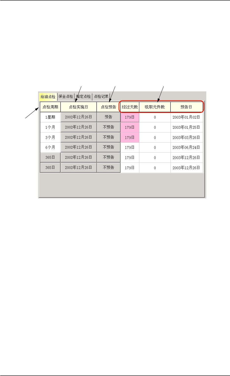 在 “ 点检预告 ” 子菜单界面中,按[ 给油点检]Tab,便显示以下选