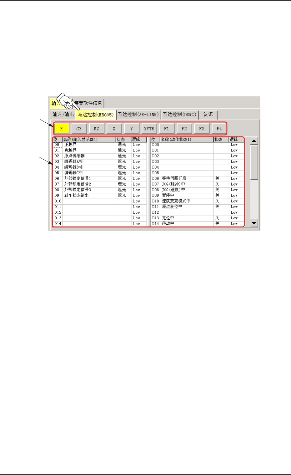 7. 1 .2 7. 1 .2 7. 1 .2 7. 1 .2 7. 1 .2 “ 马达控制 马达控制 马达控制 马达控制 马达控制 (EB005) (EB005) (EB005) (EB005) (EB005) ” Tab Tab Tab Tab Tab 显示马达控制 (EB005) 的输入 / 输出状态。 • 页面显示 页面显示 页面显示 页面显示 页面显示 在 “ 输入检查 ” 选项卡中,按 [ 马达控制 (EB005)]Tab …