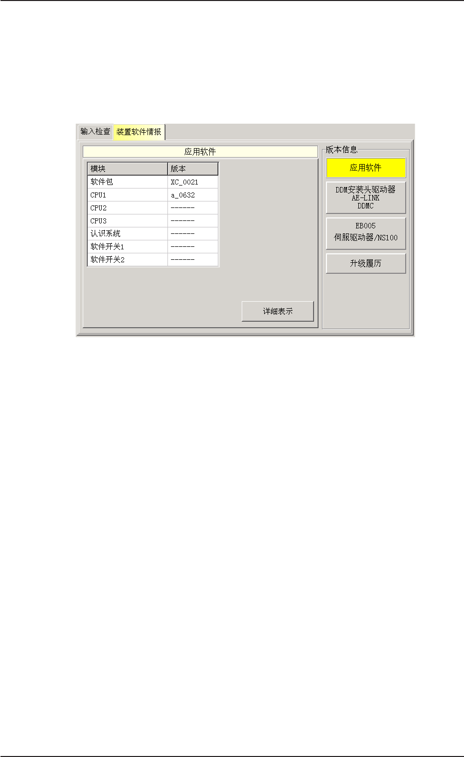 按该按钮,切换到以下显示内容。( 也是 “ 装置软件情报 ” 选