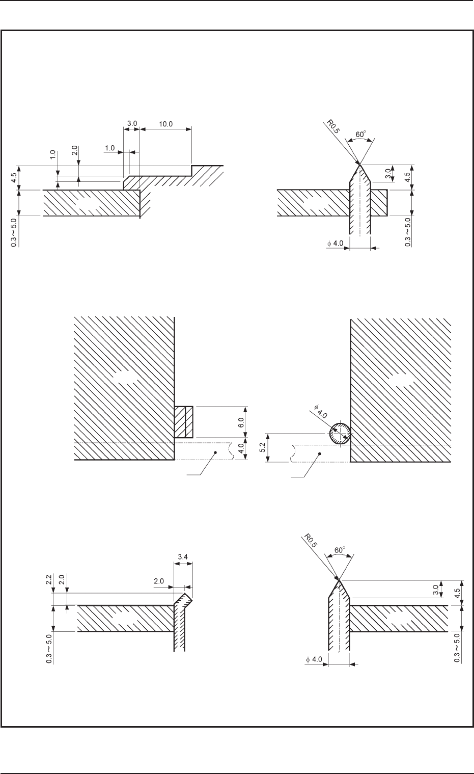 • 障碍物( 参照各部截面图) 到吸取吸嘴或是元件的接近界限的最小距离定到 “ 0.5mm”