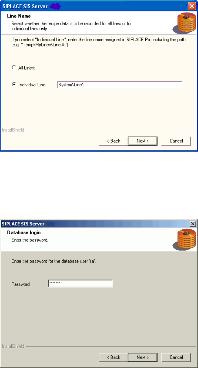 ¾ If SIPLACE SIS is only to record the data for a particular line, enter the name of the required line and