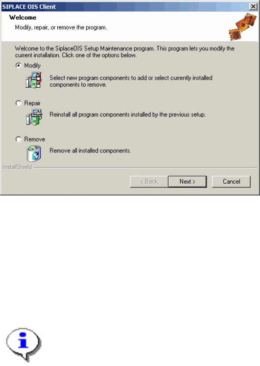 ¾ Select the program from the list (SIPLACE OIS / SIPLACE OIS Server / SIPLACE SIS Server) and