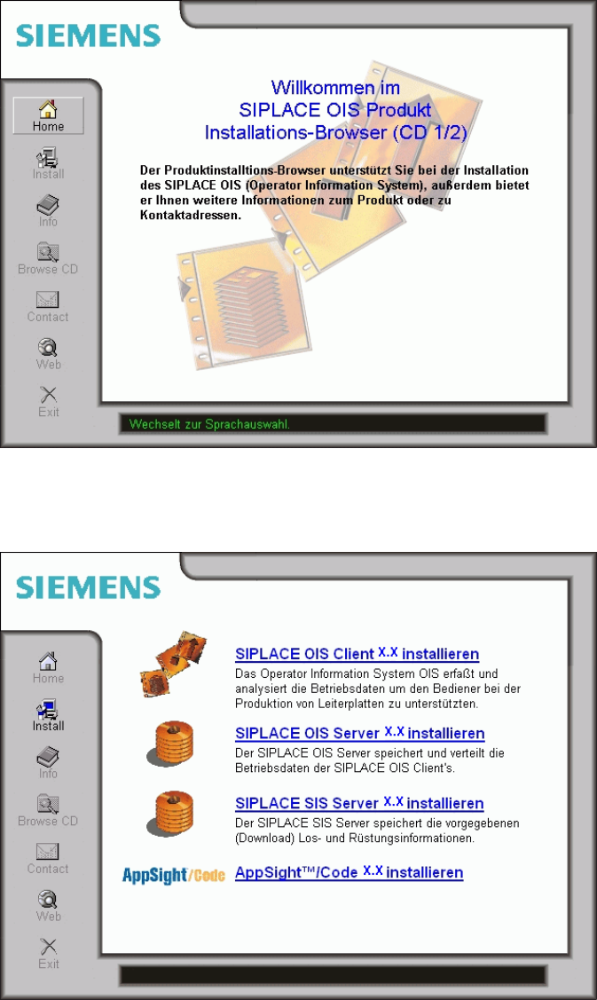 OIS Client, OIS Server, SIS Server Version 5.2 Installationsanleitung Installation manual Es öffnet sich ein Dialog, indem Sie weitere Menü s finden. Die Menüs unterstützen Sie bei der Installation. ¾ Wählen Sie z.B. Web…
