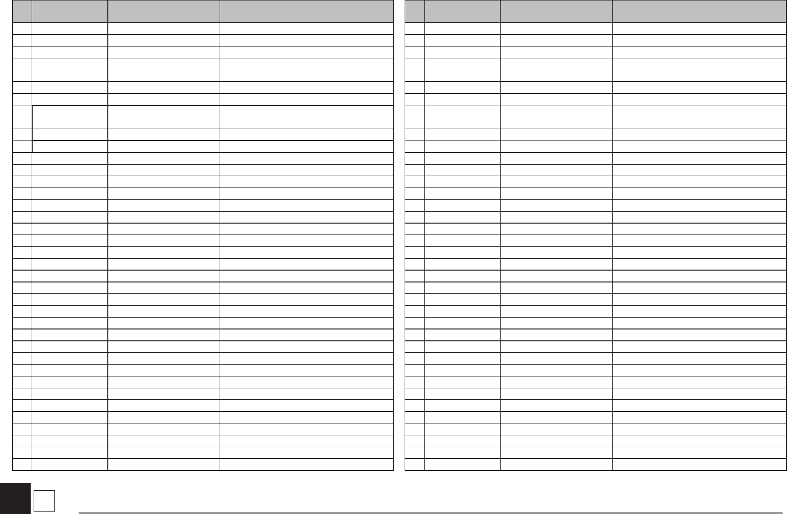 No. Part No. Part Name Uses No. Part No. Part Name Uses