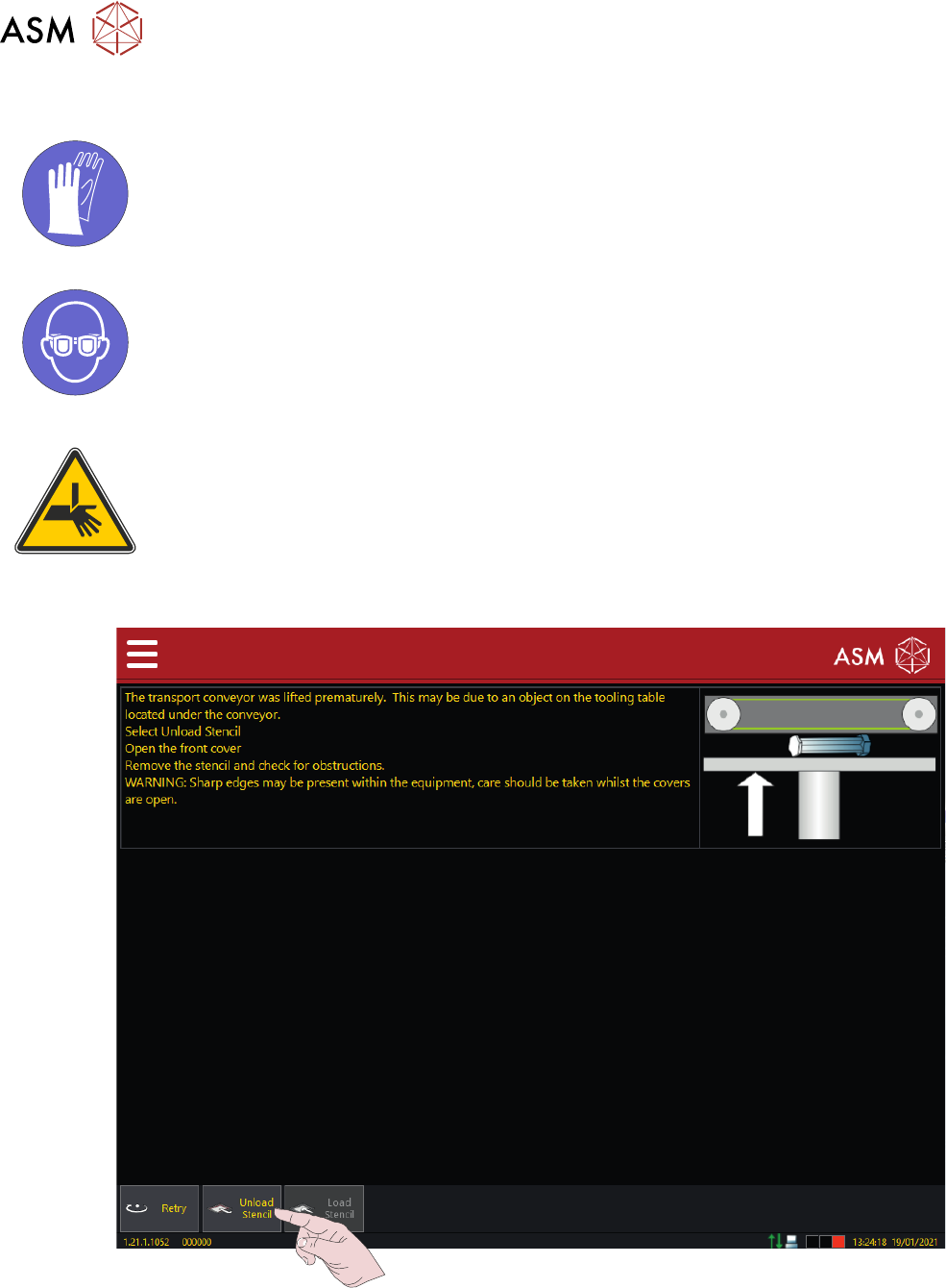 7 错误恢复 7.4 传送带已上升 操作手册 DEK TQ 04/2021 109 2. 3. 4.