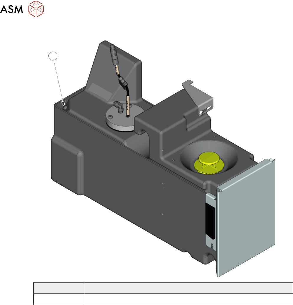 8 补充 8.9 溶剂 - 更改类型 152 操作手册 DEK TQ 04/2021 2. 卸下溶剂箱并沥干溶剂。 1 项目 描述 1 排油塞 3. 重新安装溶剂箱。