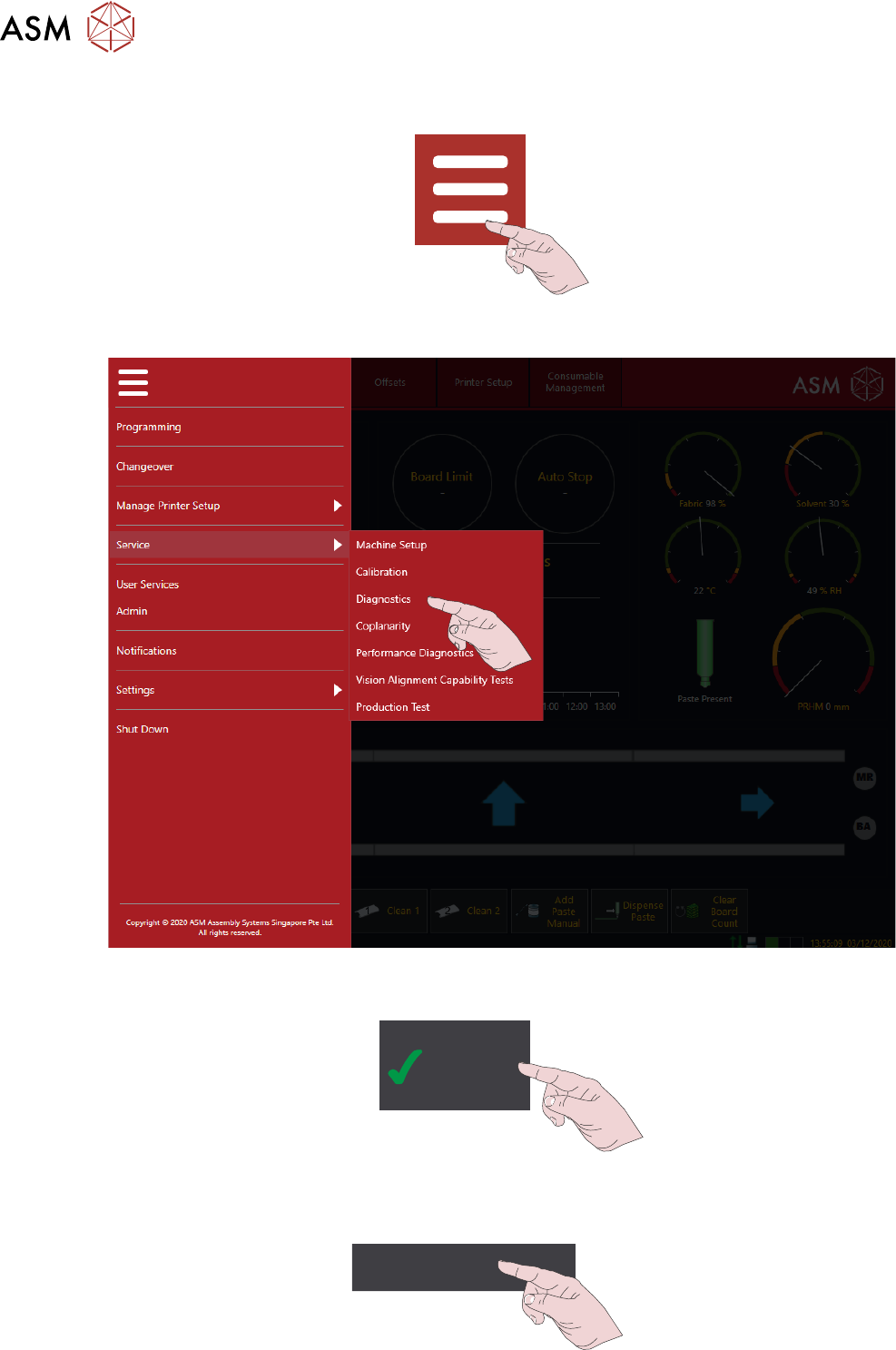 8 补充 8.9 溶剂 - 更改类型 154 操作手册 DEK TQ 04/2021 6. 7. 8. Confirm 9. Solvent