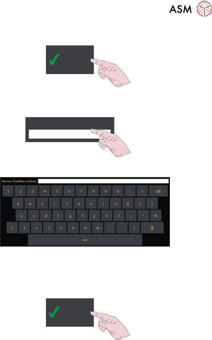 10 高级操作 10.2 HERMES 212 操作手册 DEK TQ 04/2021 9. Hermes Upline Address 10. ? 11. Accept 12. 50101 Hermes Upline Port 13. ? 注意 Hermes 的默认端口号是50101。请与网络管理员/线路控制器联系进行确认。
