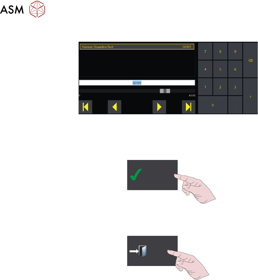 10 高级操作 10.2 HERMES 214 操作手册 DEK TQ 04/2021 18. ? 注意 Hermes 的默认端口号是50101。请与网络管理员/线路控制器联系进行确认。 19. Accept 20. Exit 21. 在上下行站点上为印刷机设置 IP 地址 和 端口号 。 注意 请参见上下行机器的技术文档获取相关指示。 10.2.4.2 远程设置 通过网络远程配置 Hermes。必须启用 Hermes 远程配置,并建立…