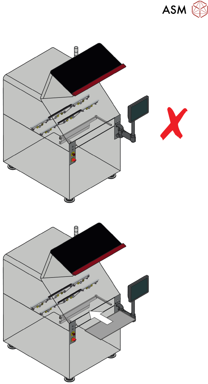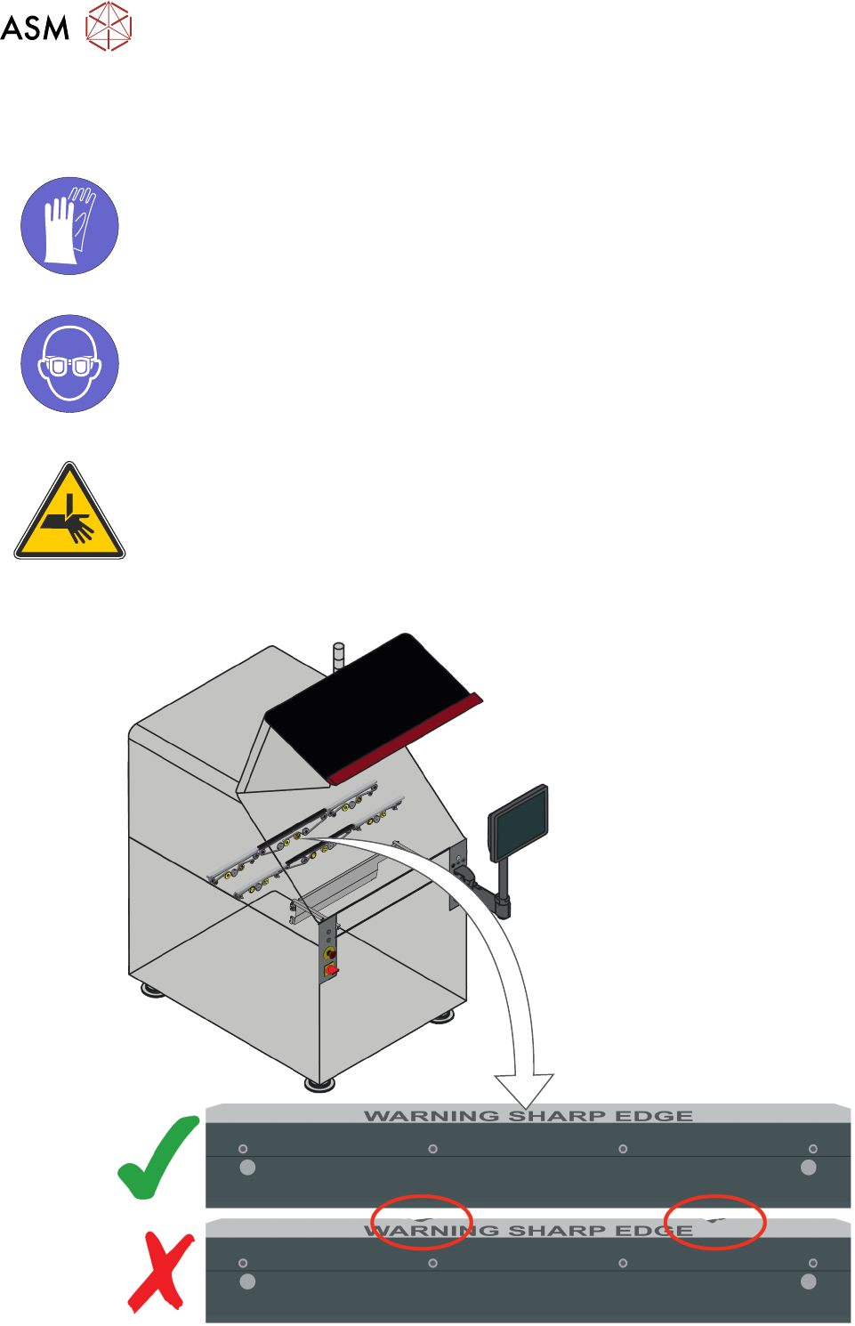 3 概述 3.3 机器准备 24 操作手册 DEK TQ 04/2021 3.3 机器准备 3.3.1 飞行前检查 强制性 有毒物质可能存在。 安全手套必须坚固。 强制性 。需戴防护眼镜。 有毒物质可能存在 警告 夹板器。在机器工具区域工作时必须小心操作避免受伤。前后夹板 器的刀片非常锋利。 1.