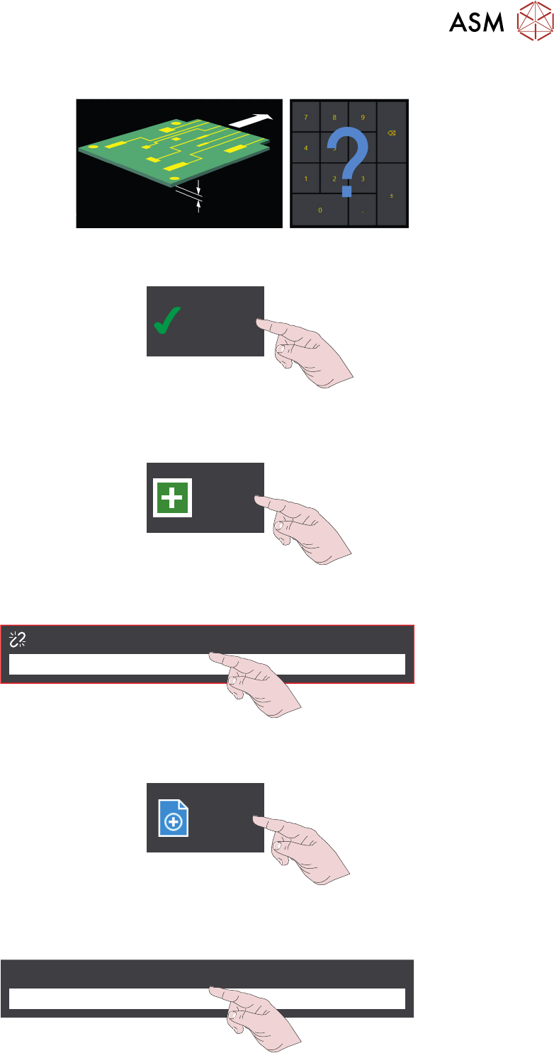 5 产品文件 5.1 创建板文件 44 操作手册 DEK TQ 04/2021 6. Accept 7. Board Width **.*mm 8. 9. Board Length ***.* mm 10. 11. Board Thickness ***.* mm
