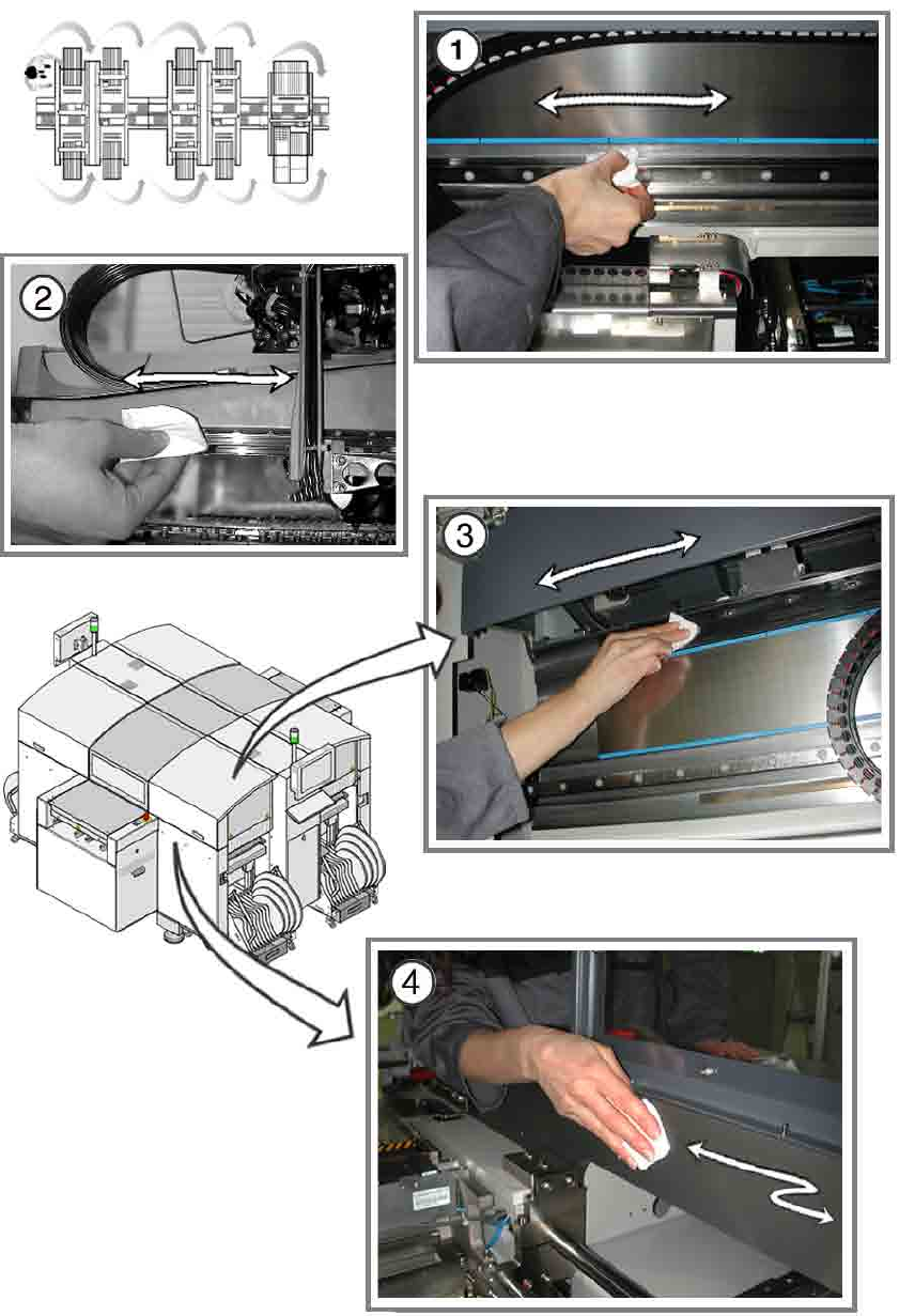 (2) 用新的 SIPLACE 清潔紙巾潤滑保養線性導軌。