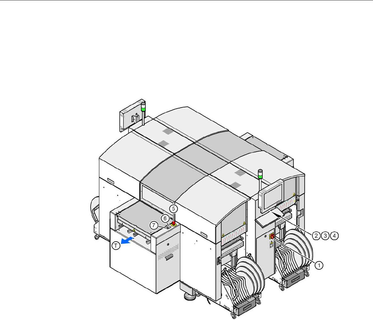 D4 預防性保養 1 安全指示 20 06 年 6 月中文版 5 1 安全指示 1 圖 1. 0 - 1 開關和按鈕的位置 - 由 PC B 輸出側檢視 (1 ) 總電源開關 (2 ) 電源供應裝置側操作面板上的 St op (停止)鈕 (黑色) (3 ) 電源供應裝置側操作面板上的 St ar t (啟動)鈕 (白色) (4 ) 電源供應裝置側操作面板上的元件計數器 (5 ) 輸出側的 EM ER GE N C Y - S T OP …
