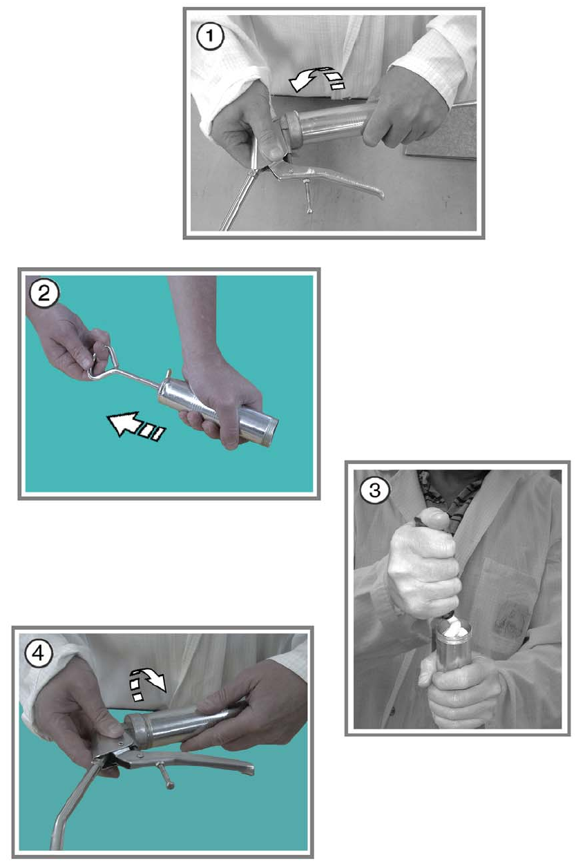 (1) 反時針旋轉黃油槍,將其開啟。