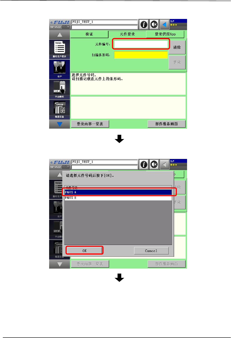 2. 进行本地验证 OPL V -sF AB-1.2S 16 SmartF AB 本地验证 快速参考手册 选择元件号码后,用生产程序显示出使用的元件的一览表。 请选择登录的元件,按下 [OK] 按键。 iMJyQiBS iMJyQiBS Downloaded at 2015/10/08 22:10:75 by 3NEC4804 DL#mFYRGbCq