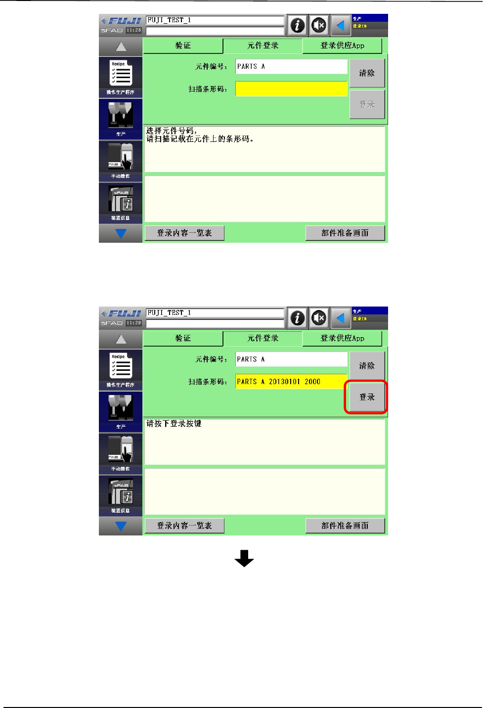 状态下按下[登录]按键的话,登录元件信息到机器上。