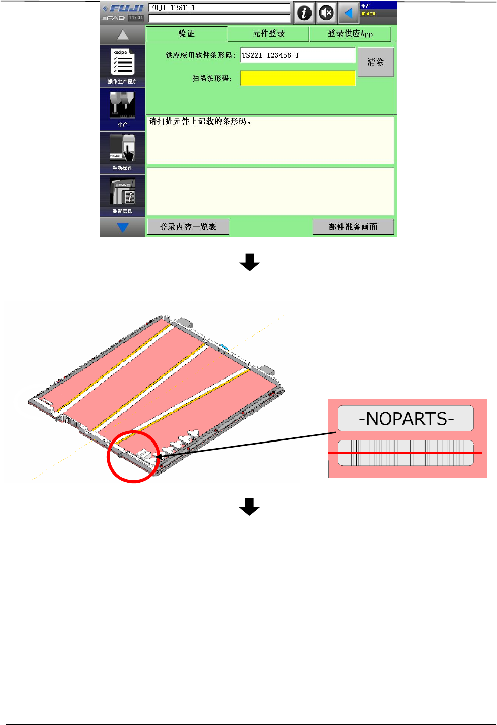 读取料盘附带的「-NOPARTS-」条形码的话,根据应用软件条形码删除原来验证信息。