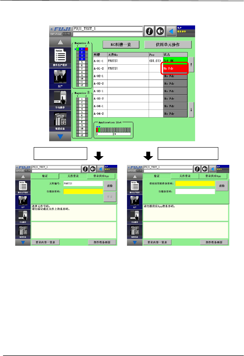 3. 设定供应应用软件 OPL V -sF AB-1.2S 34 SmartF AB 本地验证 快速参考手册 2. 进行本地验证时,按下各料槽的状态 后移动到验证画面。 元件未登录时,移动到元件登录画面 。请进行元件的登录。 元件未登 元件登 完 iMJyQiBS iMJyQiBS Downloaded at 2015/10/08 22:10:75 by 3NEC4804 DL#mFYRGbCq
