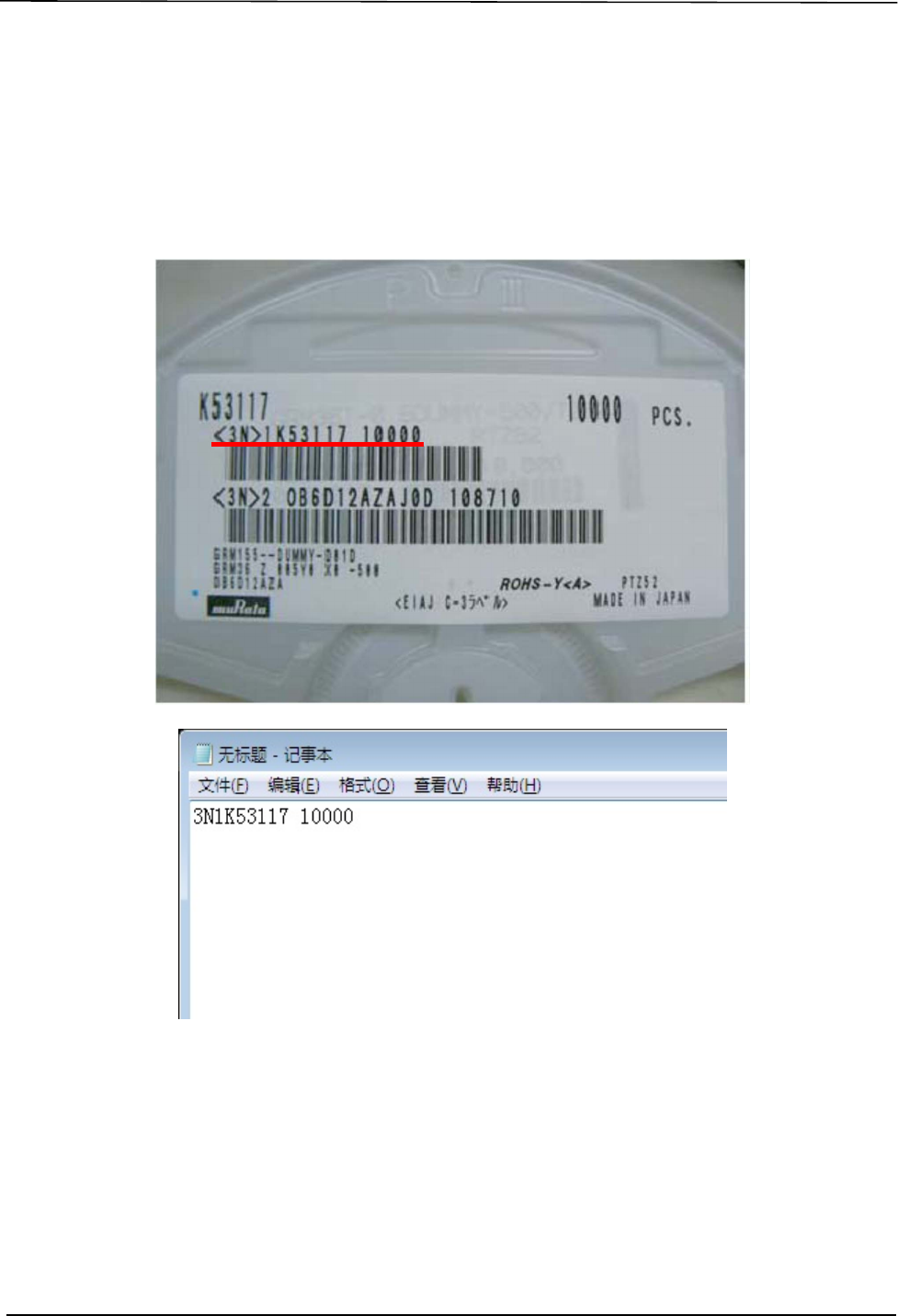 1.请用外部 PC 打开「记事本」,输入条形码的数值。
