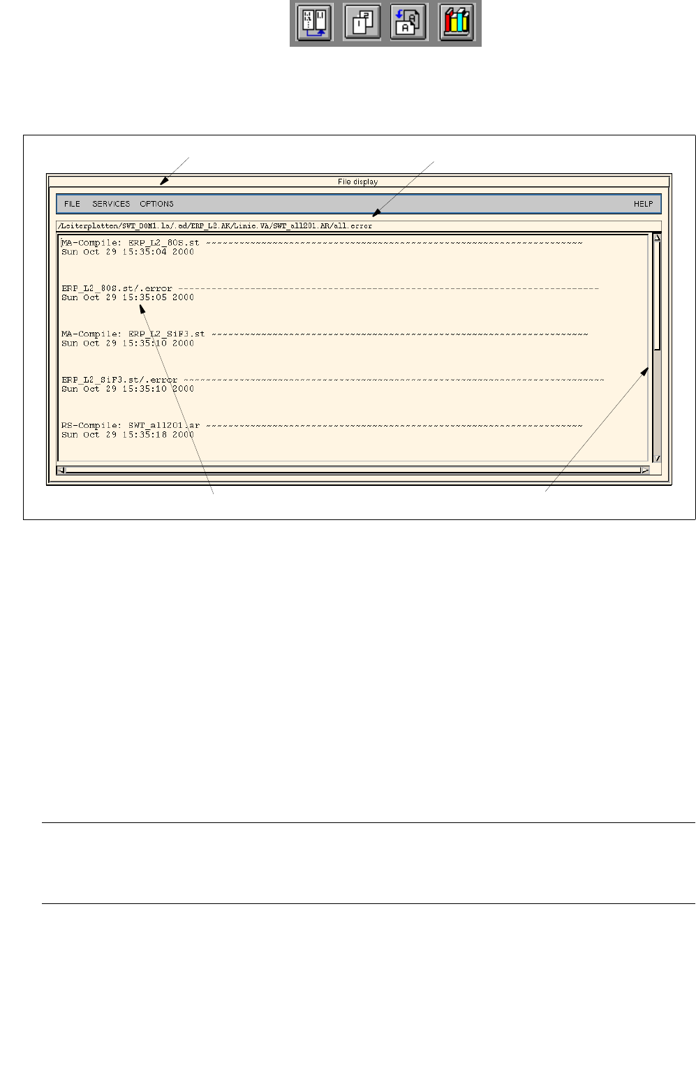 User Manual Line Computer UNIX 4 Data Management Software Version 502.xx 10/2000 Issue 4.5 File Display User Interface 147 I t I I Display area This area shows the conten ts of the o pen file wh ich may be edited, if nec…