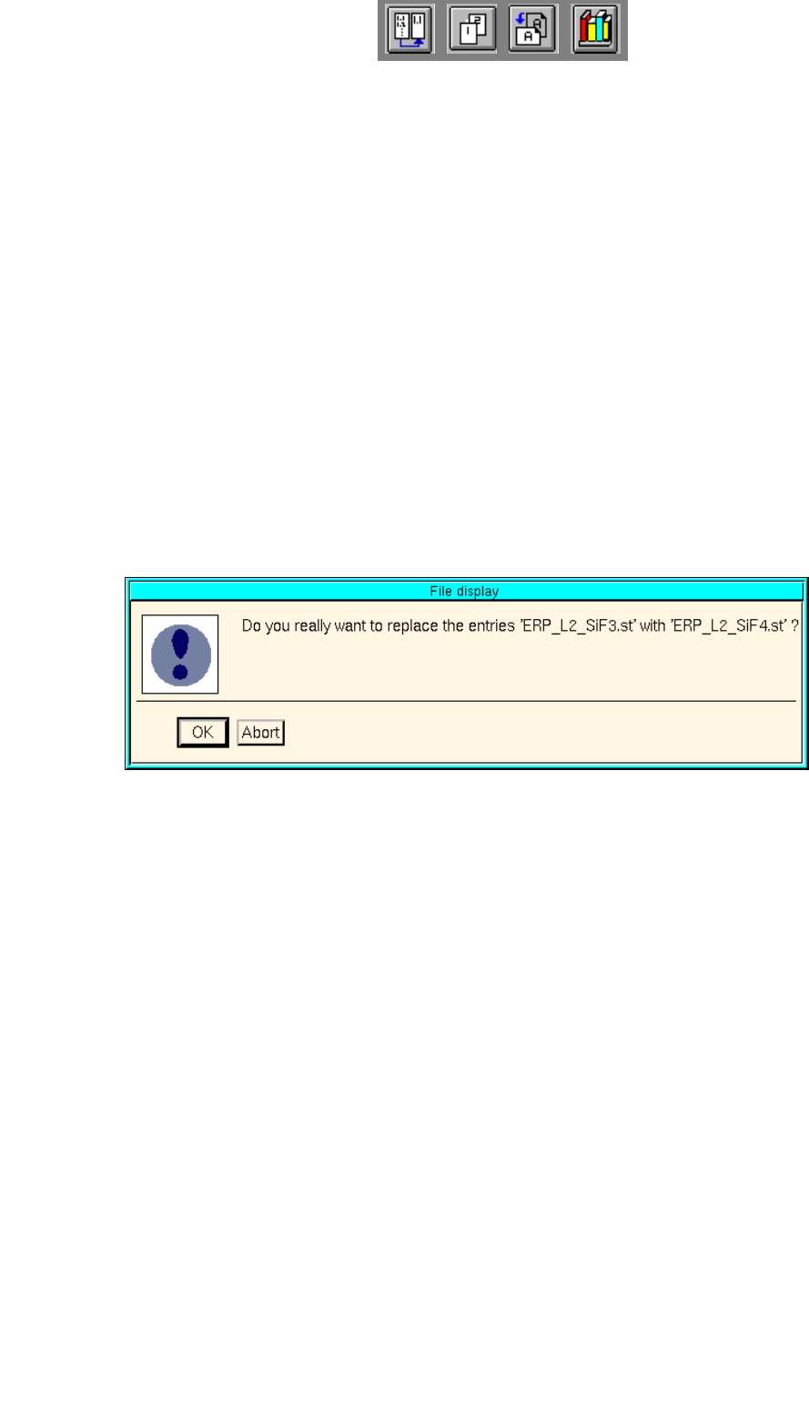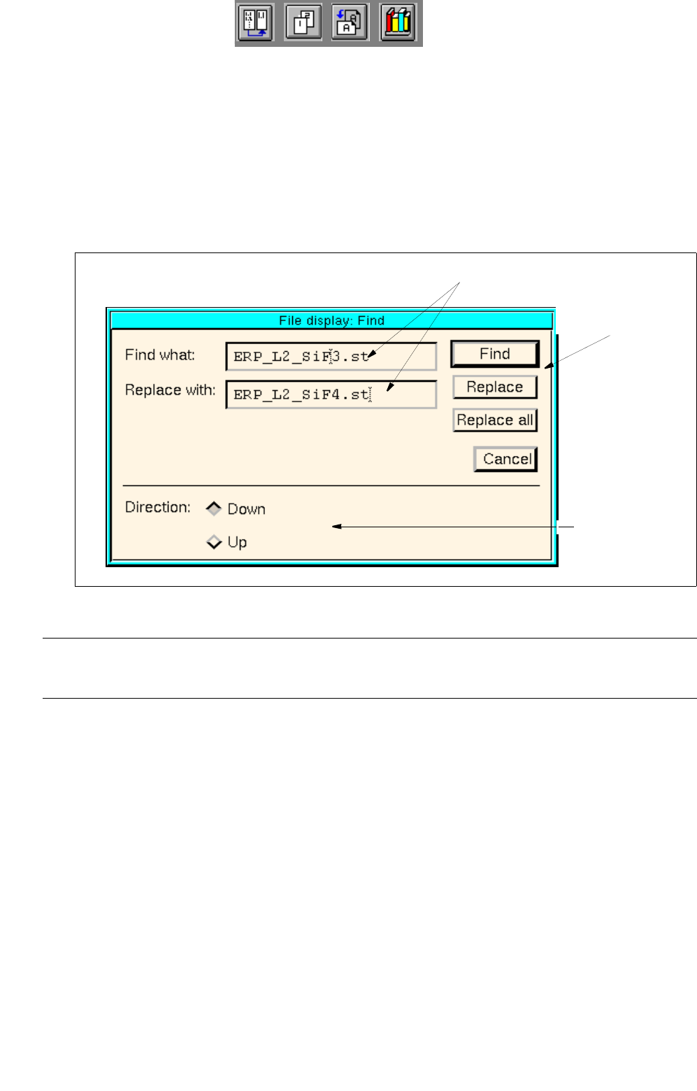 User Manual Line Computer UNIX 4 Data Management Software Version 502.xx 10/2000 Issue 4.5 File Display User Interface 149 I t I I 4.5.2.2 SER VICES menu - Search /Replace This bu tton serves to ope n the window for the …