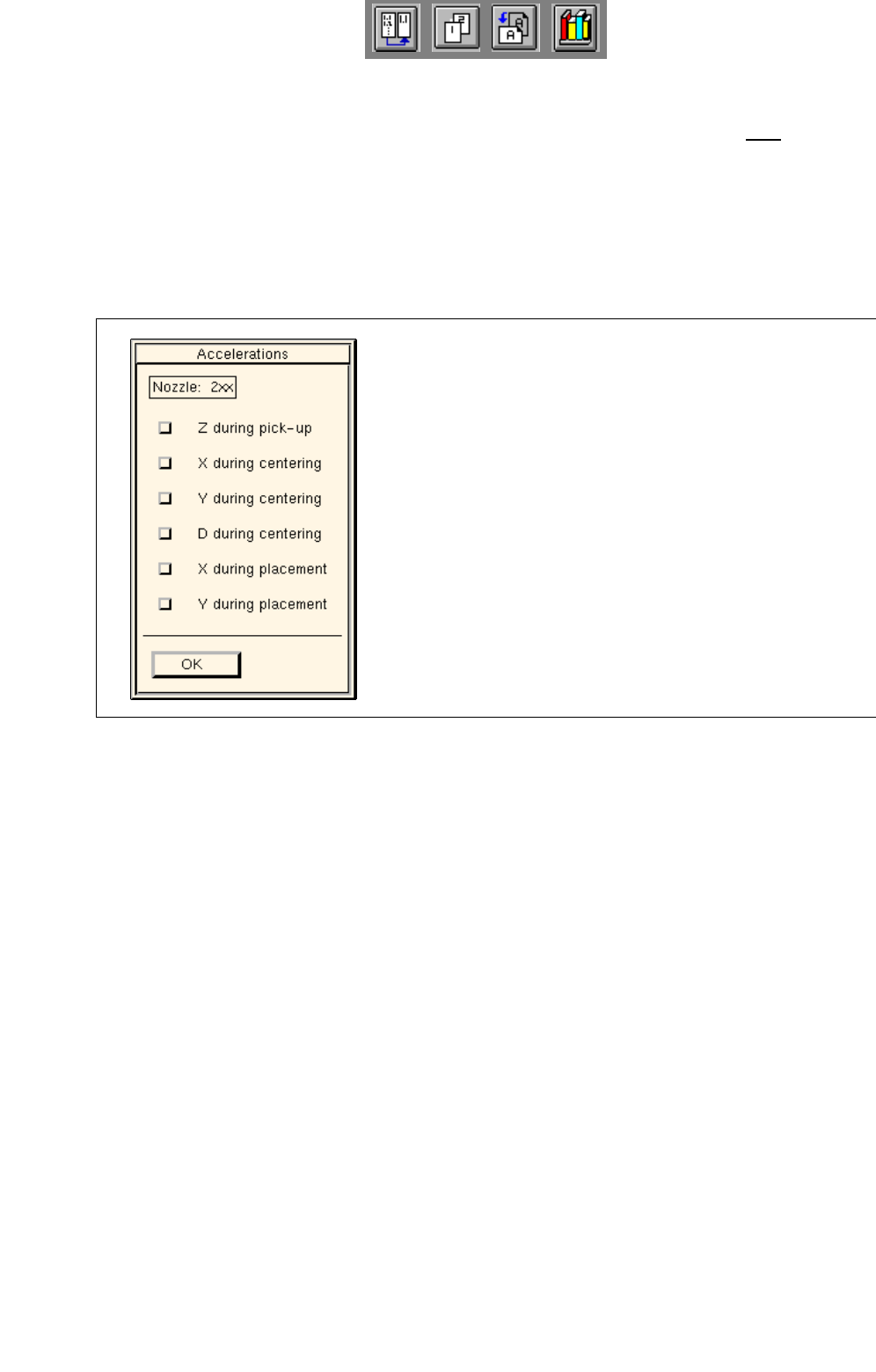 mum (100%) acceleration can be selected. The settings are always valid for all nozzles of a given type.