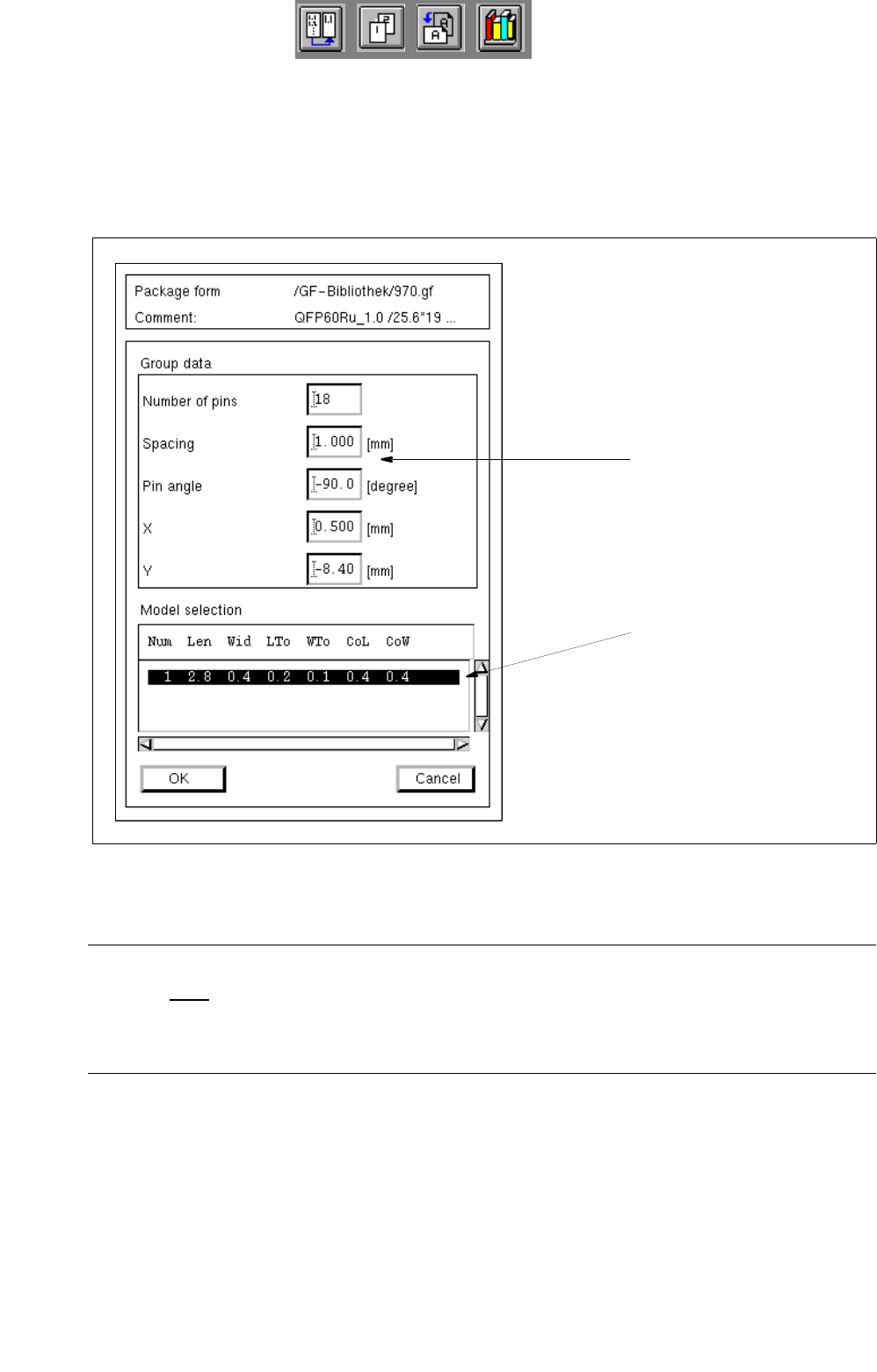 User Manual Line Computer UNIX 6 Product / Package Form Software Vers ion 502.xx 10/2000 Issue 6.1 Pack age Form Editor 217 I t I I Creating a pin group Procedu re: ● Click on Create in the comma nd area of the "Mod…