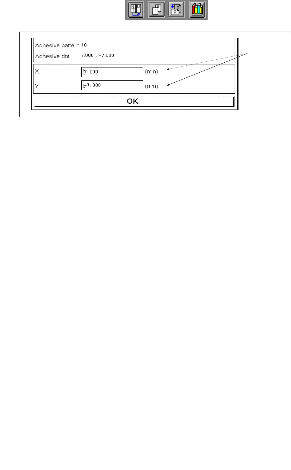 Fig. 7.1.2 Window "Entries of x/y-coordinates for adhesive dot"