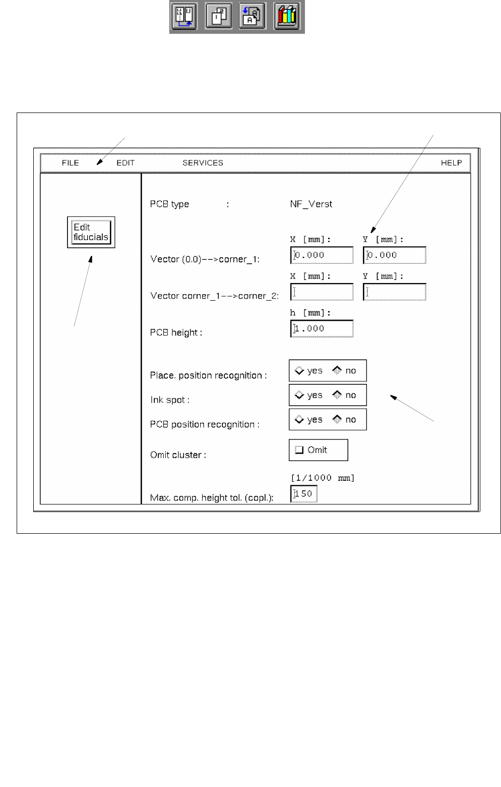 tion on/off, PCB position recognition on/off, placement on/off (omit cluster) and the max. component