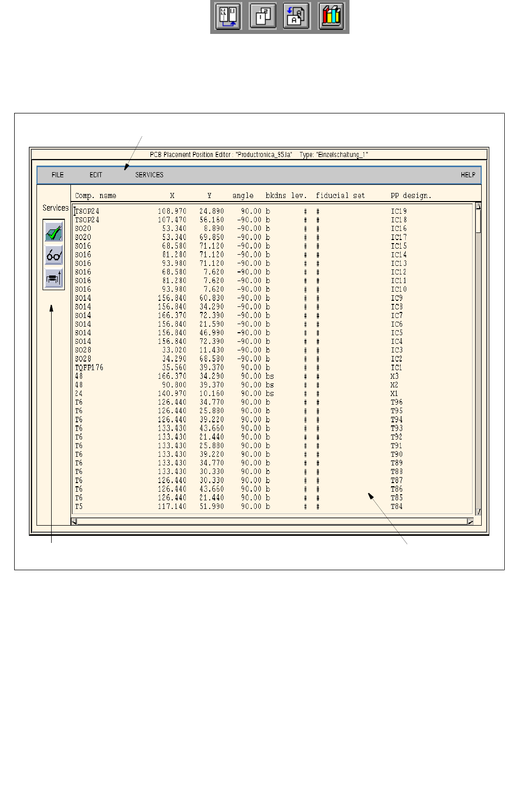 A Placement Position Editor can be opened for every PCB type generated (see description on page 8 - 244).