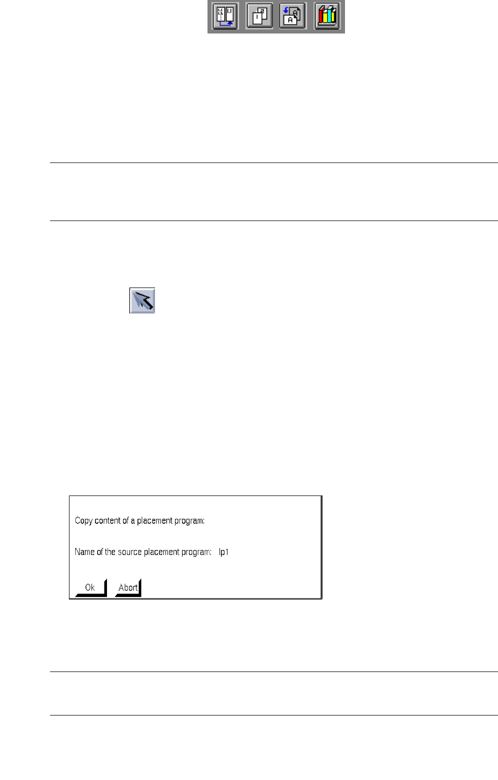 these icons the entered placement position data can be reviewed, searched and replaced, or e.g. sorted by the