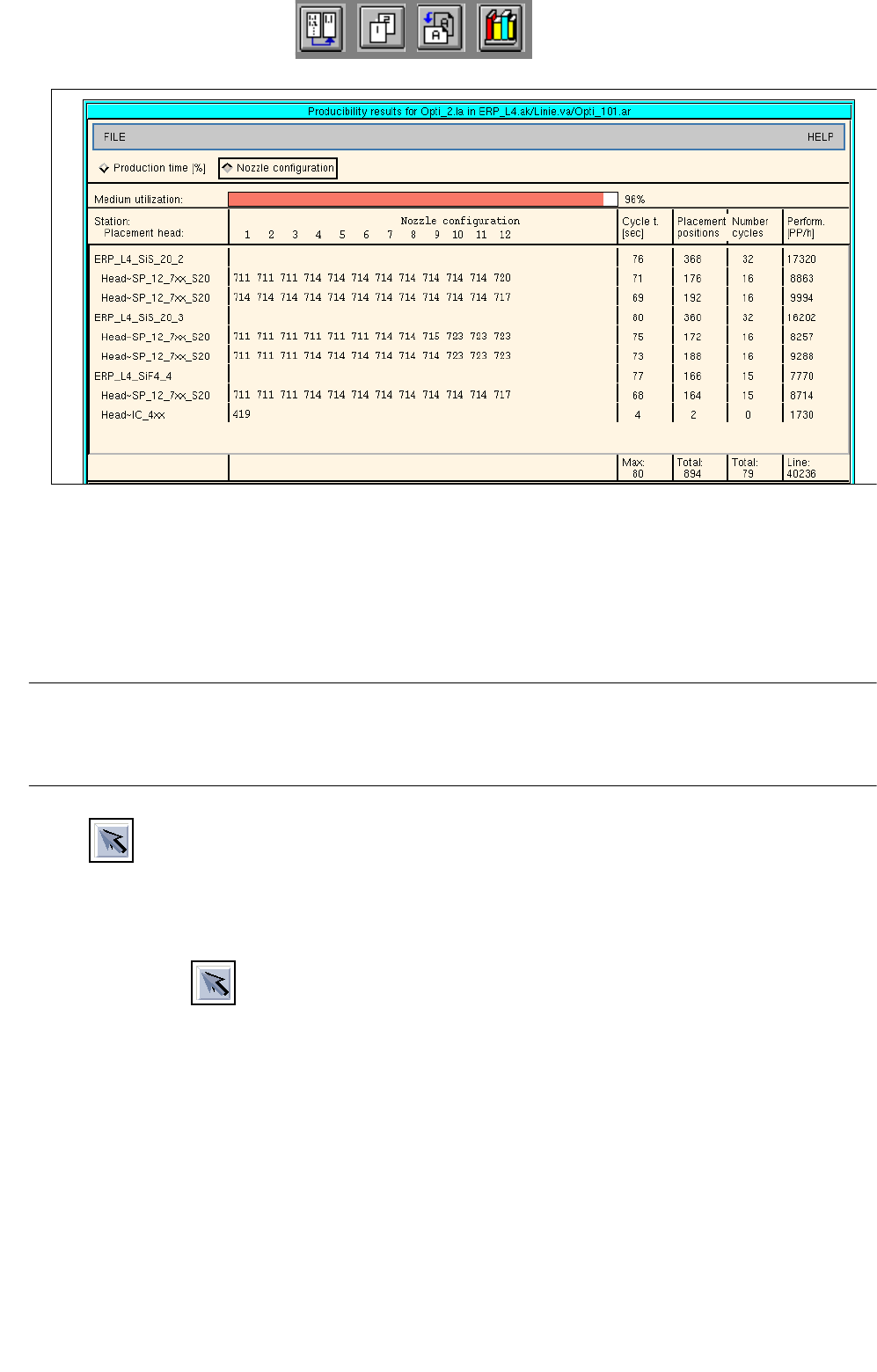This icon allows the jobs and basic optimization data of a lot file to be displayed. Moreover, the