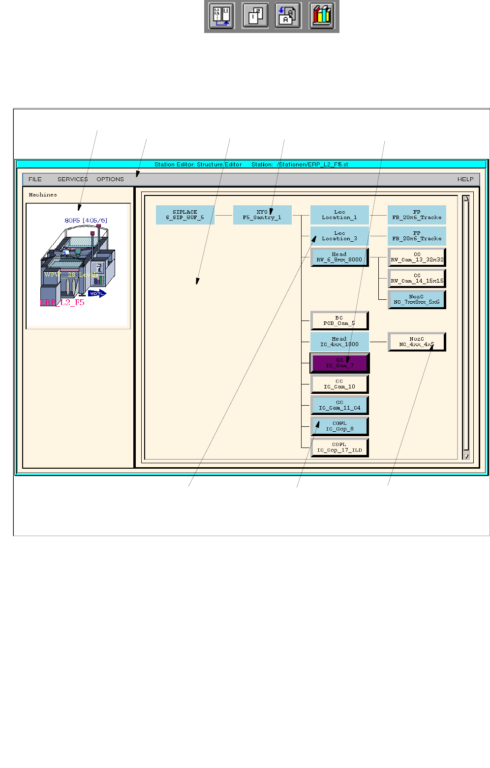 Fig. 12.1.1 Structure Editor (Machine Type "SIPLACE F5)