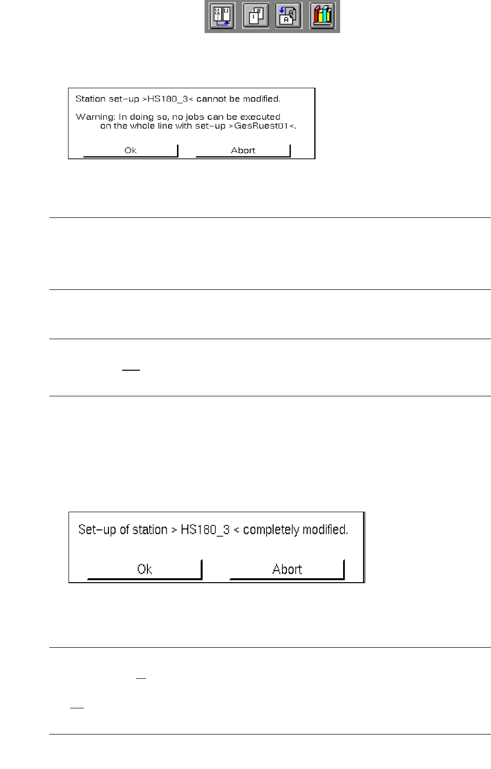This enables the operator to confirm the physical set-up changeover of a station.